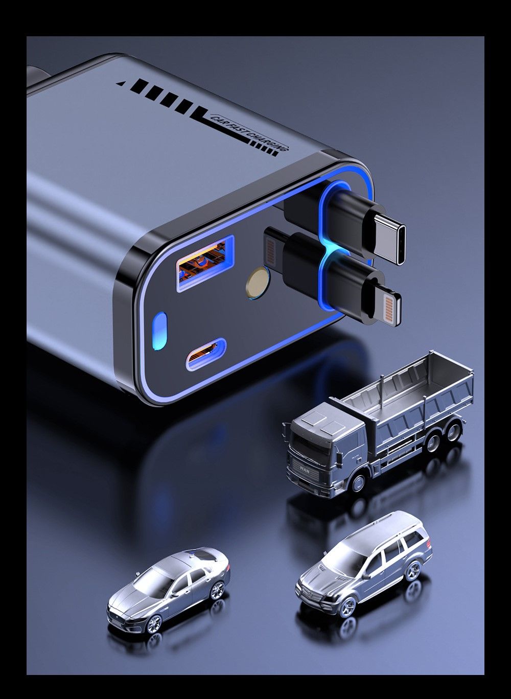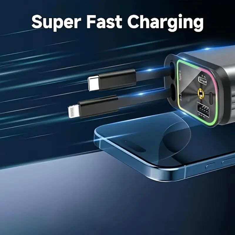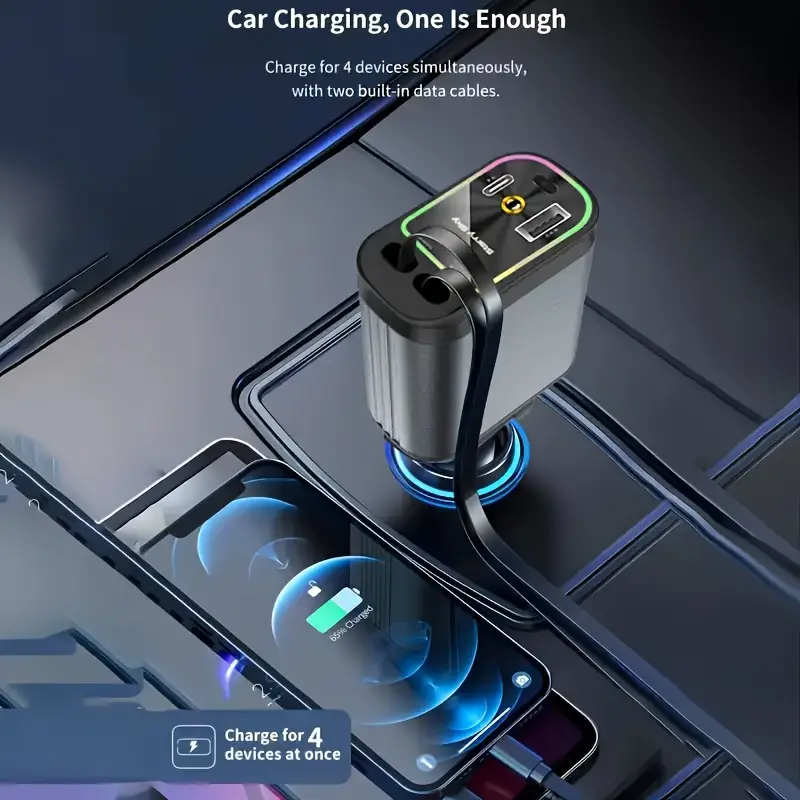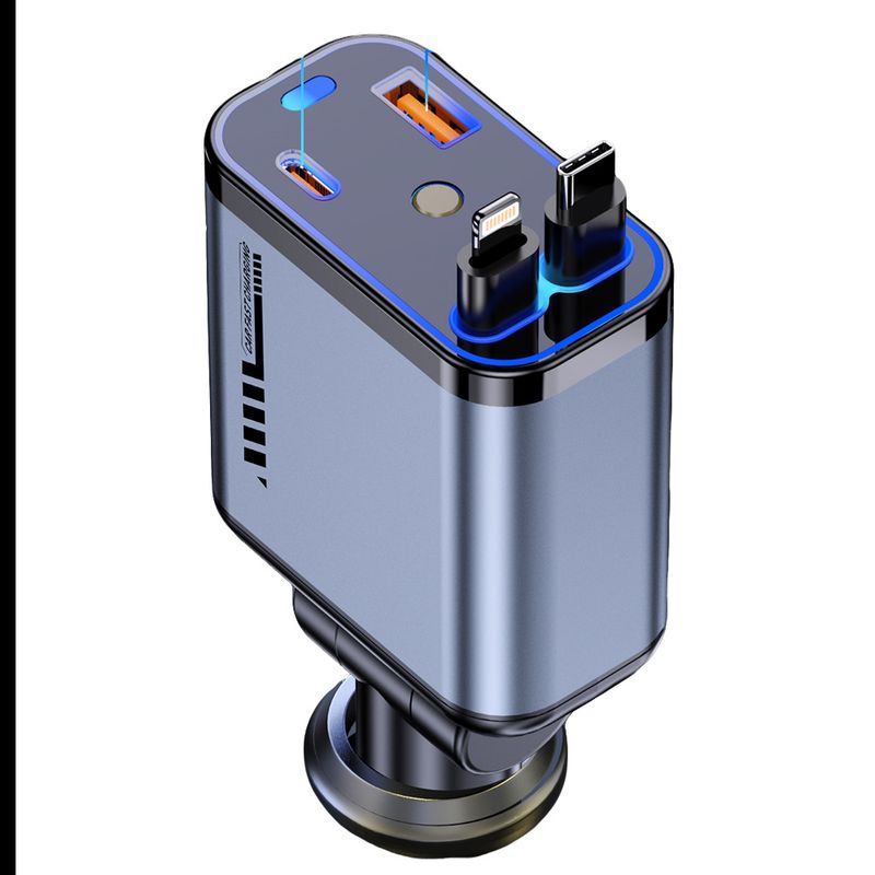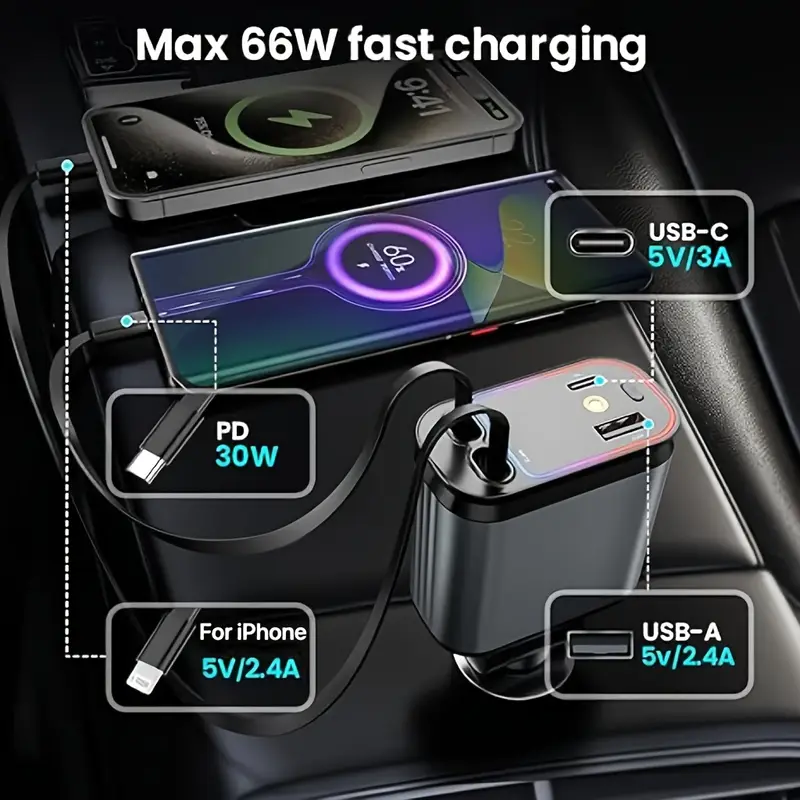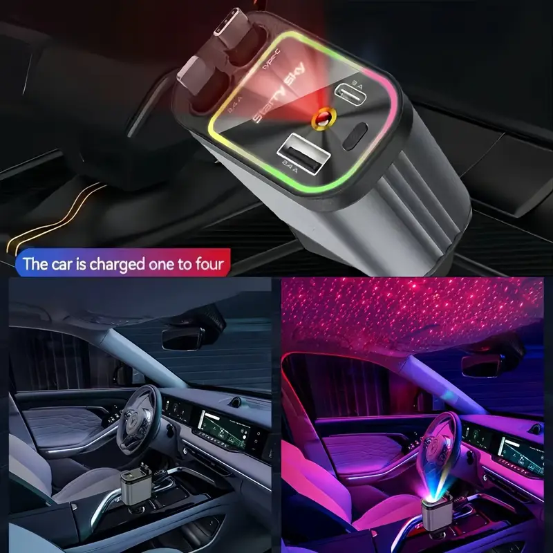 4-in-1 Aluminum Alloy Car Charger, 66W Retractable Starry Sky Roof Car Charger